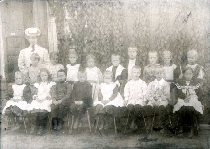Kuvassa on Turun suomalaisen valmistavan koulun luokka todennäköisesti vuonna 1908, jolloin äiti oli seitsemän vuoden ikäinen. Äiti on takarivissä neljäs vasemmalta.