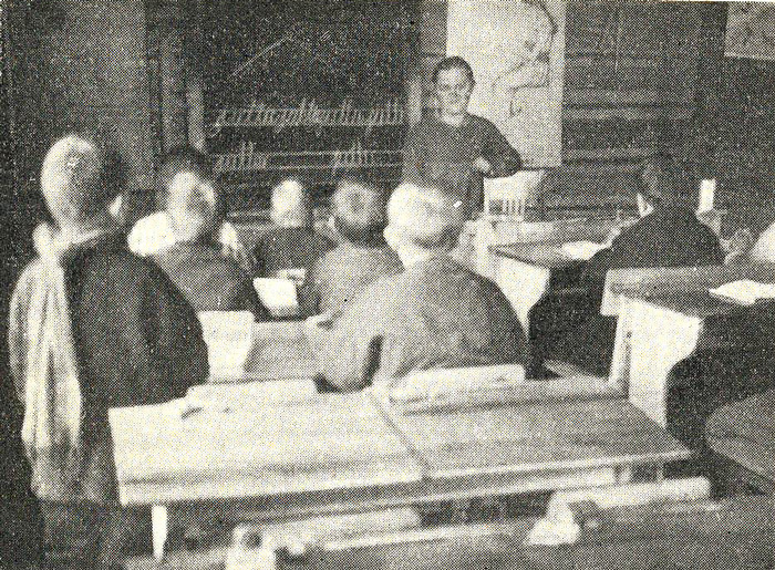 Lehtikirjoituksessa ei ollut kuvia. Nämä kuvat ovat kirjan sivulta 23, 'Nautsin majatalo ja talonväkeä' ja sivulta 110, 'Neiti opetettavineen tunnilla'. |
