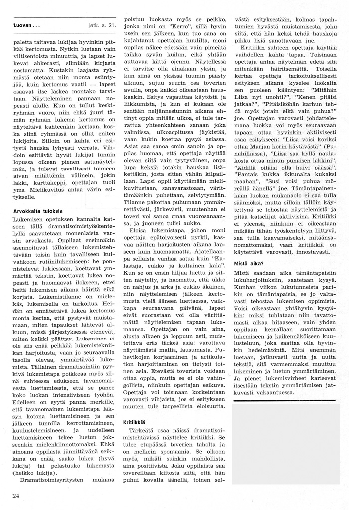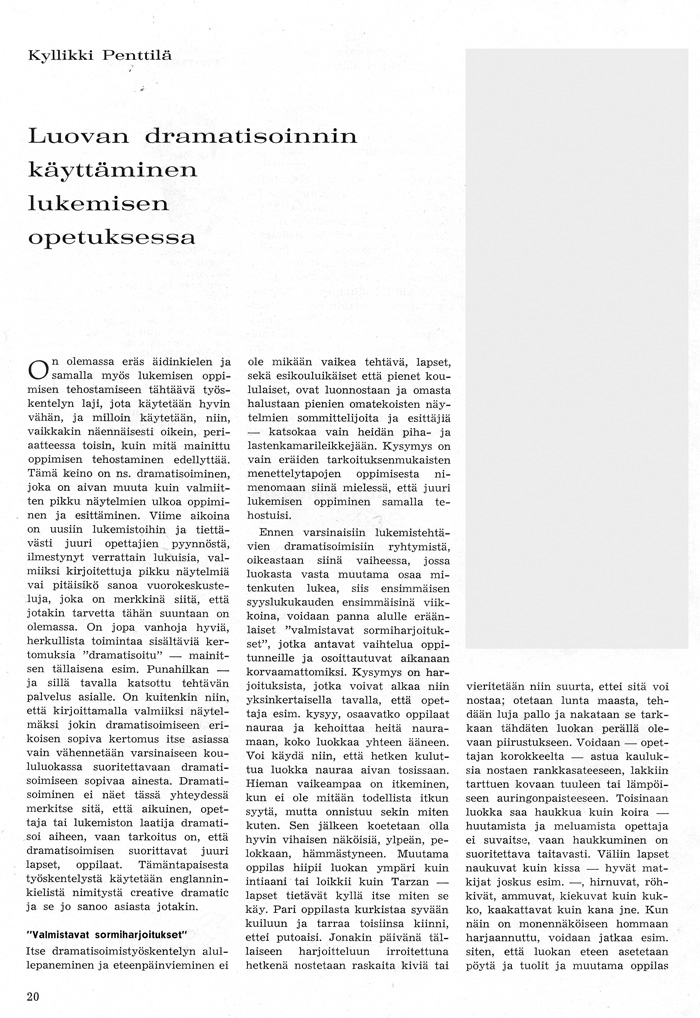 Opettajain lehti. N:o 30. 27.7.1963. Luovan dramatisoinnin käyttäminen lukemisen opetuksessaOn olemassa eräs äidinkielen ja samalla myös