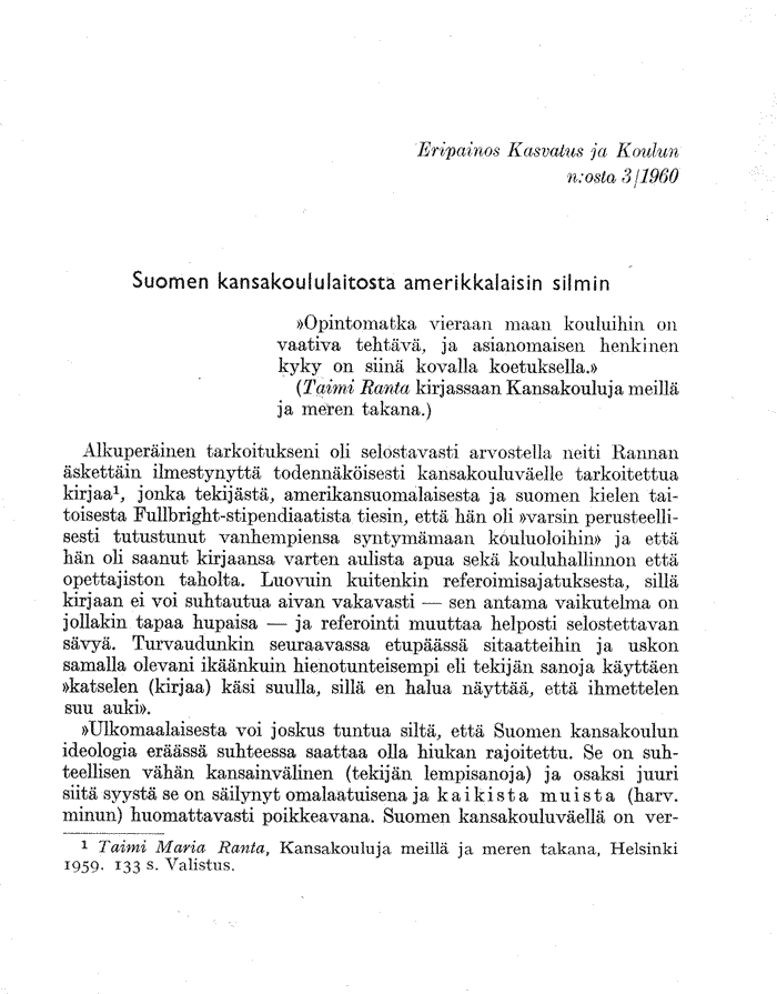 Kasvatus ja Koulu. n:o 3/1960.